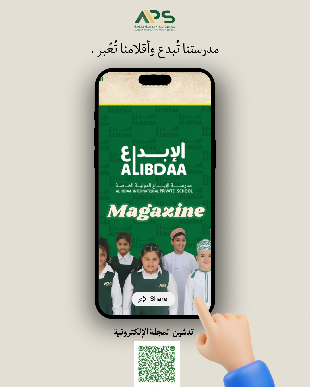 دشَّنت مدرسة الإبداع الدولية الخاصة مجلتها الإلكترونية “مجلة الإبداع”، التي تُسلّط الضوء على أنشطة وفعاليات المدرسة بمشاركة متميزة من الطلبة. وتهدف المجلة إلى توثيق إنجازات المدرسة، وتيسير اطلاع المجتمع المدرسي على أبرز الأنشطة والمبادرات في بيئة تعليمية محفّزة على الإبداع والتميّز. Al Ibda’a International Private School has launched its digital magazine, Al Ibda’a Magazine, which highlights the school’s activities and events with distinguished participation from students. The magazine aims to document the school’s achievements and provide an accessible platform for everyone to stay informe ...
